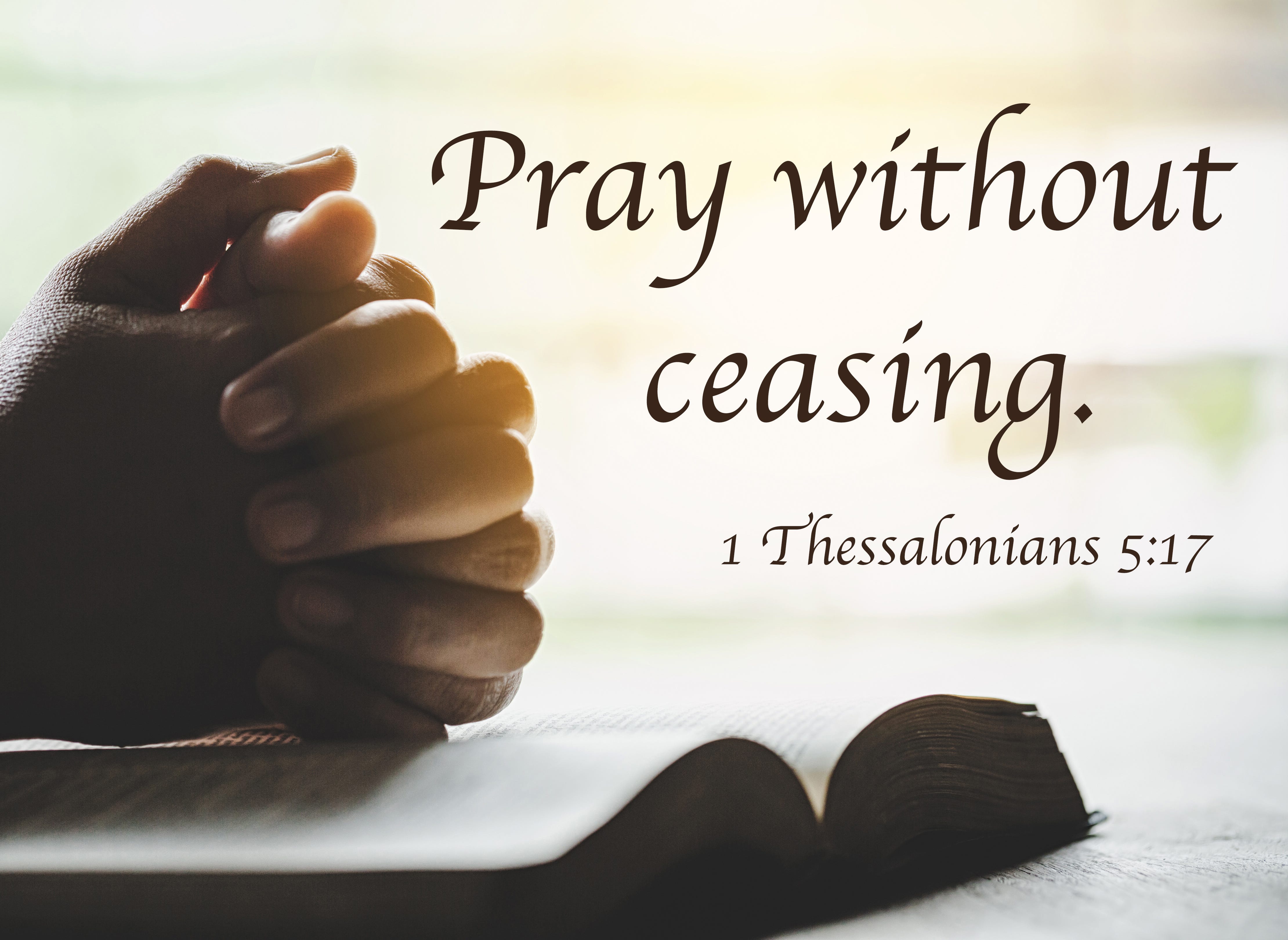 As with Bible study, prayer does not have to be restricted to a formal time set aside each day just for prayer. Prayer is simply open communication with God, a conversation you can jump in and out of throughout the course of your day. This is what Paul meant in 1 Thessalonians 5:17. “Pray without ceasing” simply means, always be in the spirit and attitude of prayer, knowing with confidence that God is always available and listening.